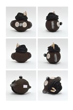 Chou en papier mâché, crème de plâtre et vers en argile.